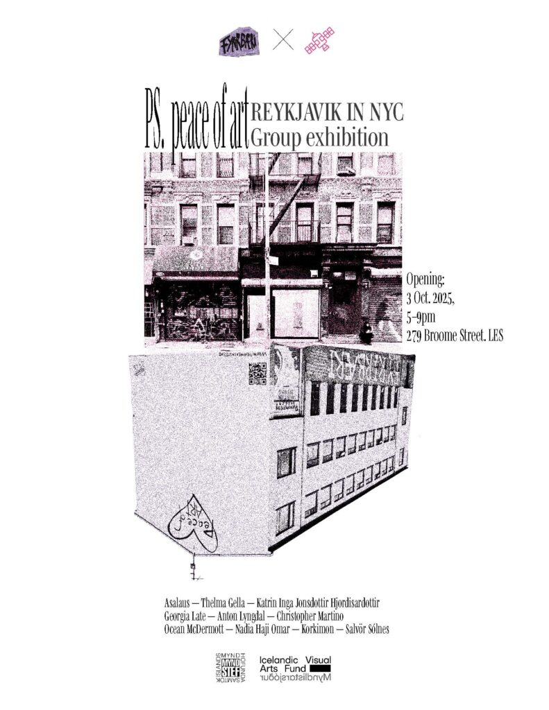 The group exhibition PS. Peace of Art, a collaborative project between two artist-run spaces, Phenomenon gallery and Satellite Art Show, is supported by the Icelandic Visual Arts Fund and The Icelandic Visual Art Copyright Association.